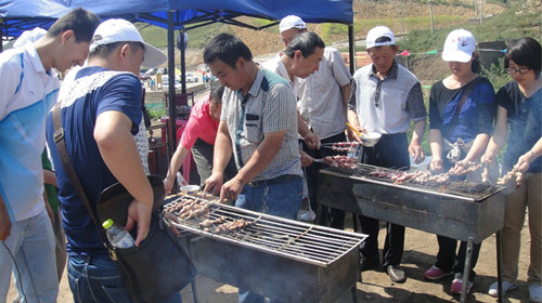 到達景區后的第一項活動(dòng)是爬山,同事們都鼓足干勁,力爭上游,但是在切磋比試的過(guò)程中更多的是相互的關(guān)心和幫助。中午,我們自己動(dòng)手制作燒烤,在翠綠的山谷間,呼吸著(zhù)清新的空氣,品嘗著(zhù)自己動(dòng)手制作的美味,那是一種發(fā)自?xún)刃牡挠鋹偤头潘?。這一次的活動(dòng)給我們帶來(lái)的不僅僅是工作之余的放松,更讓我們體會(huì )到了公司“以人為本”的管理理念和團結友愛(ài)的良好氛圍。